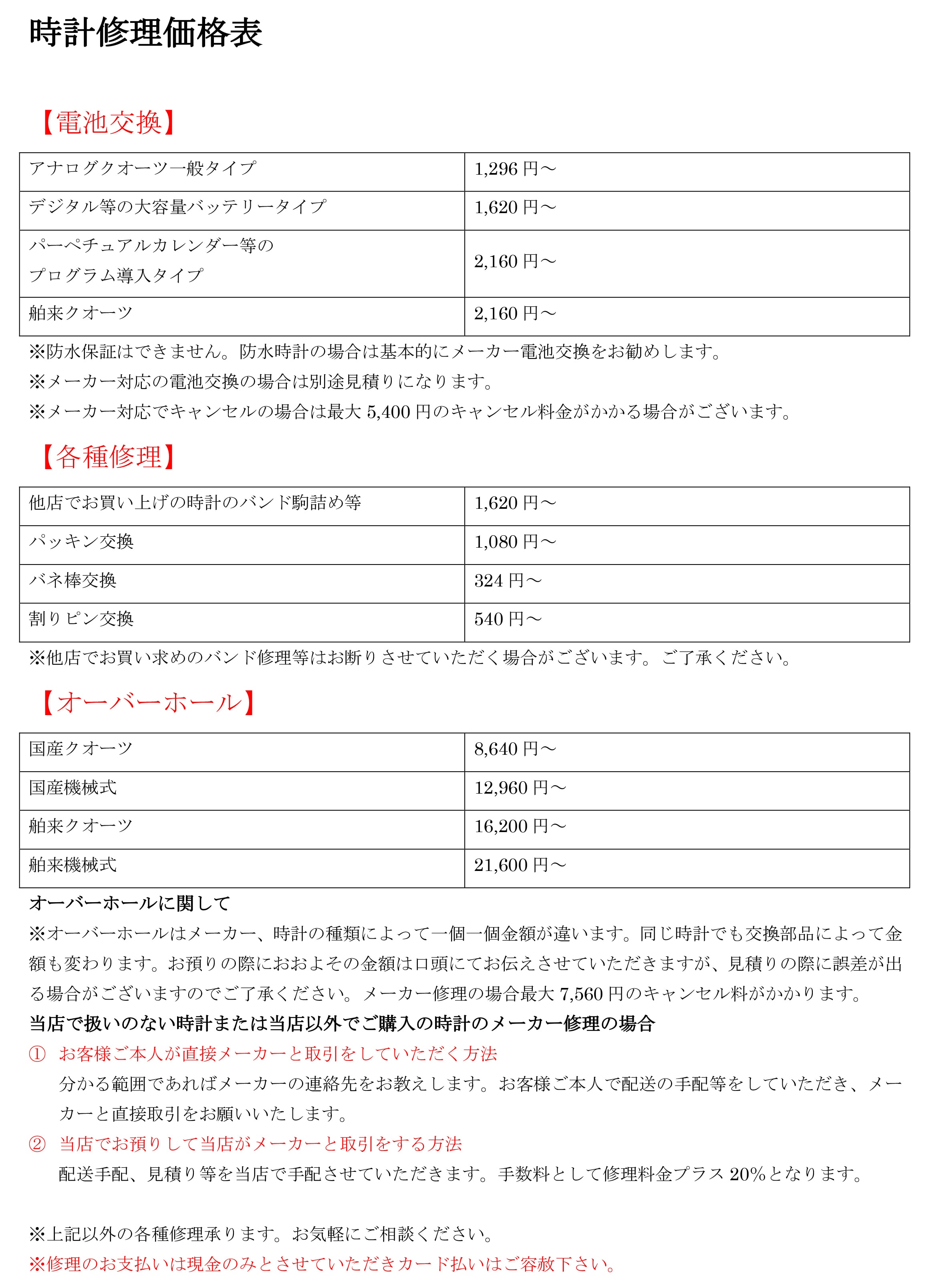 ウォッチ・クロックなどの電池交換・お修理お任せください。